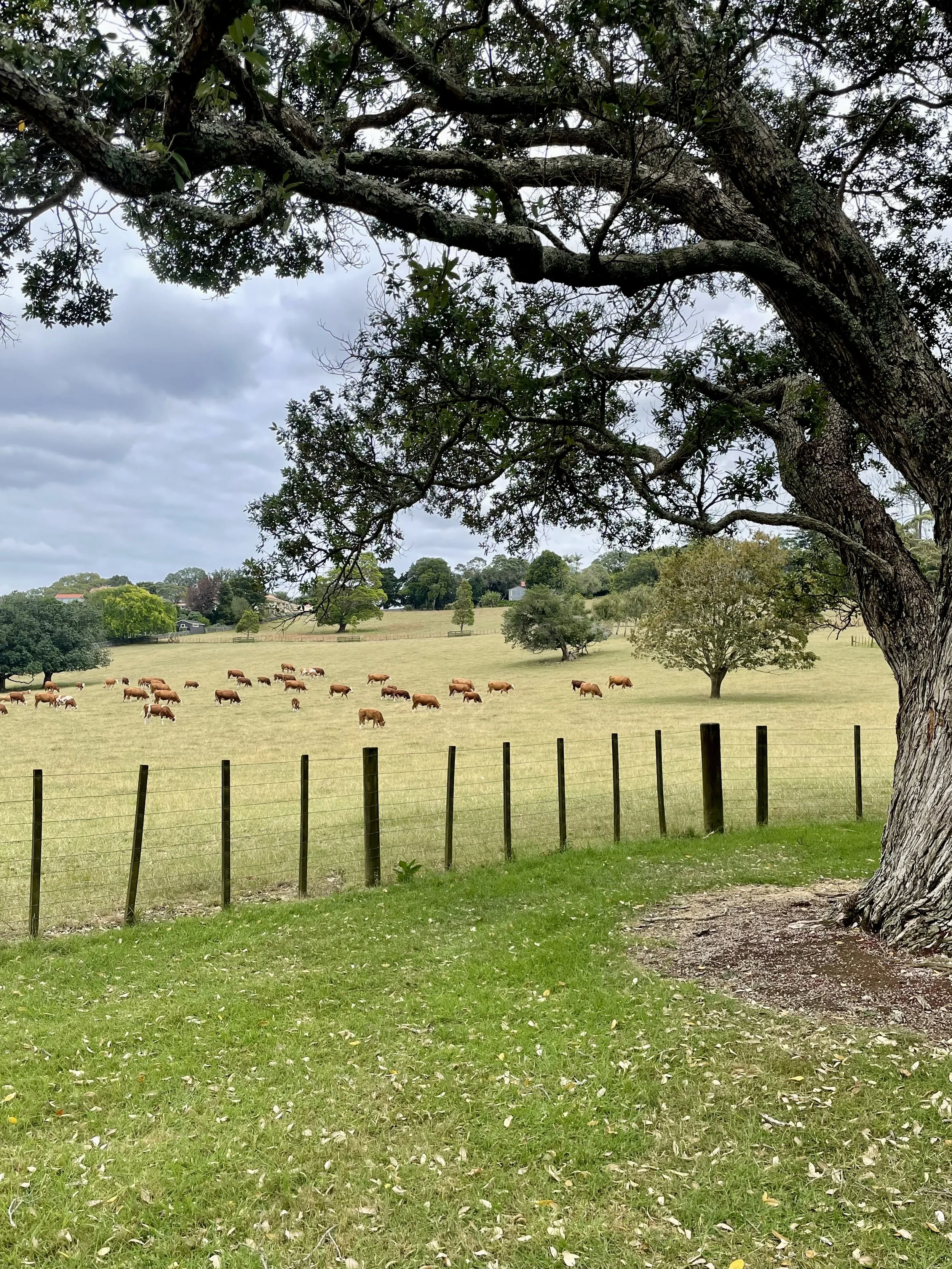 C’est l’été. Le soleil déjà si chaud au matin, qui éblouit par son intensité. Et qui donne irrémédiablement l’envie d’en profiter toute la journée. Ce vendredi, j’avais envie de m’extirper un peu de la ville tout en profitant de ce beau temps. Quoi de mieux pour cela que Cornwall Park. Comme d’habitude, je prends le bus — il n’y a rien d’autre de toute façon ici à part quatre petites lignes de train — et me voilà au vert. Un grand panneau indique Cornwall Park. Je m’avance et je franchis le pas du portail qui verrouille l’accès au parc. Une large route avec de grands bas côtés à l’herbe bien verte, ponctués tous les dix mètres d’arbres imposants. Le grillage sur le côté sert d’enclos aux animaux. D’ailleurs, voilà de belles vaches marrons et blanches qui s’adonnent à leur activité favorite, manger de l’herbe. Elles en ont de la place pour elles, et beaucoup d’herbe encore à brouter. J’entends les insectes chanter. Les bruits de la nature. Je m’installe au bord de la route, sous l’ombre d’un arbre pour manger le sandwich que j’avais acheté au supermarché. Avant de prendre la route, je venais de rencontrer Esther, originaire de Chine, et qui s’était installée ici pour (être libre et) s’adonner à sa passion, la photographie. On avait commencé à discuter alors que je remplissais ma gourde au centre commercial. On avait prévu notre petit programme pour la journée, on s’était donc quittés après avoir pris notre casse-croûte. Reprenons là où l’on s’est arrêté, sous cet arbre où je mange mon pique-nique. A regarder ce paysage avec ces grands enclos pour animaux, ces larges routes et ces vieux arbres, je pense à la Californie. Non je n’y suis jamais allé, mais c’est assez bien l’image que je m’en fais.