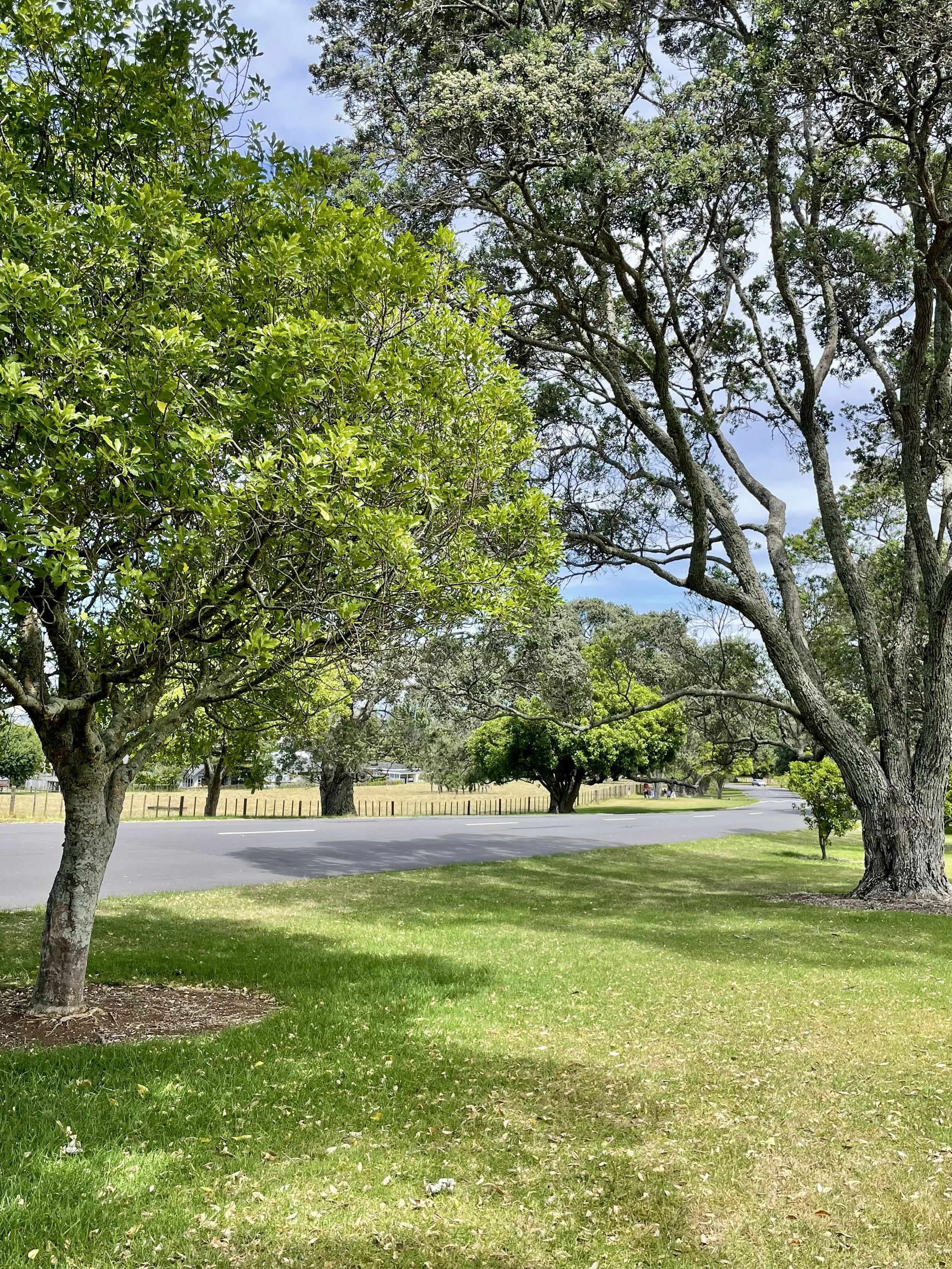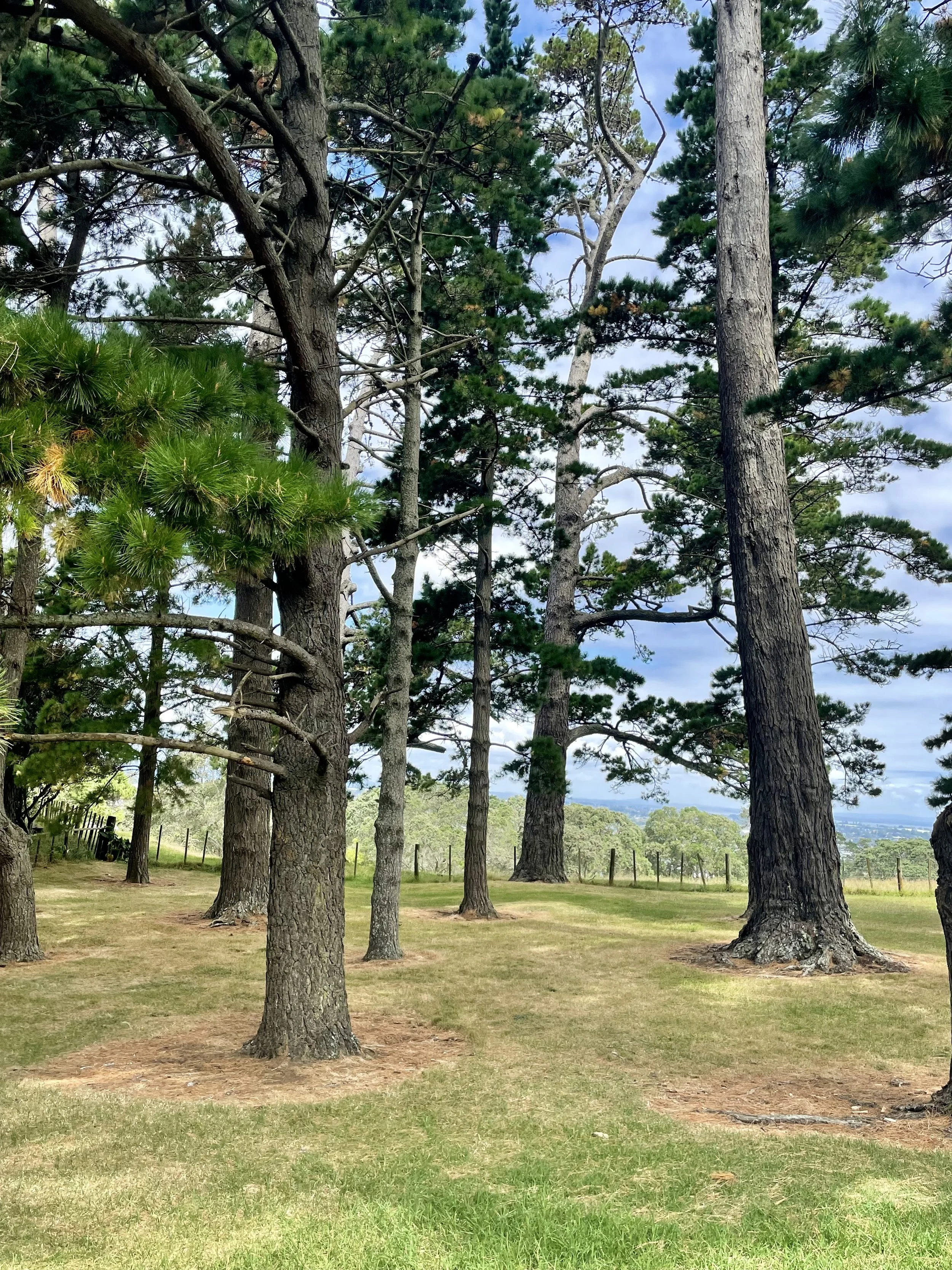 Si One Tree Hill porte ainsi ce nom (littéralement “la colline à un arbre”), c’est qu’autrefois un tōtara majestueux veillé sur la colline comme un gardien du temps. À la place désormais, un obélisque domine le paysage, hommage aux Maoris et à leur histoire. D’ici, la vue est imprenable : Auckland s’étend au loin, encadrée par le bleu scintillant de la mer et le vert infini des collines. Un vent léger souffle, chargé des souvenirs d’un passé qui ne demande qu’à être raconté. Je redescends petit à petit. Je fais une sieste sous de jolis pins. Déjà l’heure de repartir.